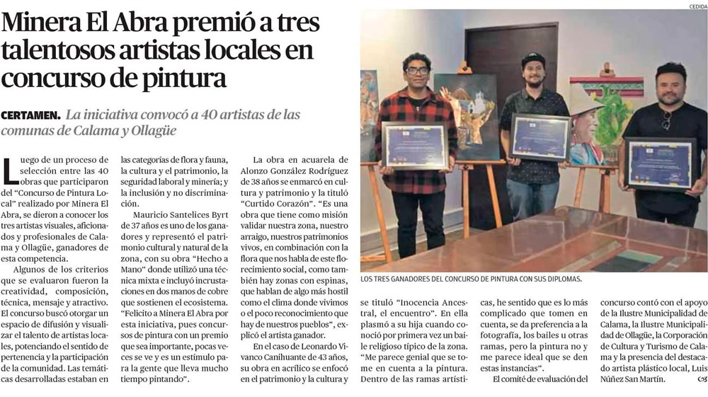 Minera El Abra premia a tres talentosos artistas locales en Concurso de Pintura - (elamerica)