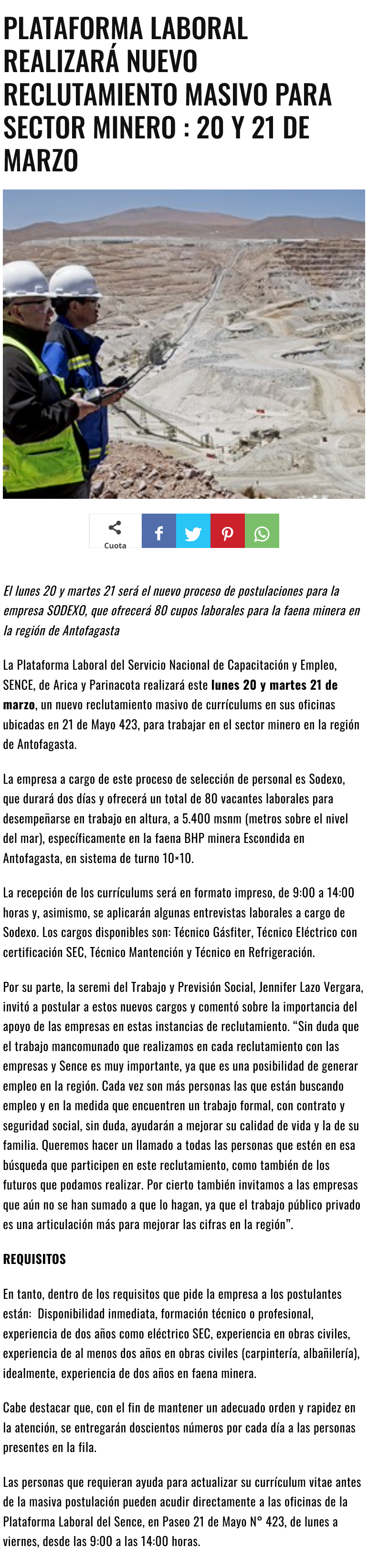 Trabajos Arica: Hay 80 cupos en nuevo reclutamiento para faena minera - (elmorrocotudo)