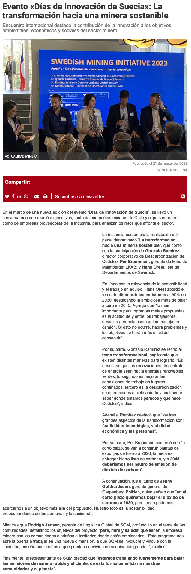 Delegaciones suecas de mineras participan en jornada de colaboración - (CNN Chile)