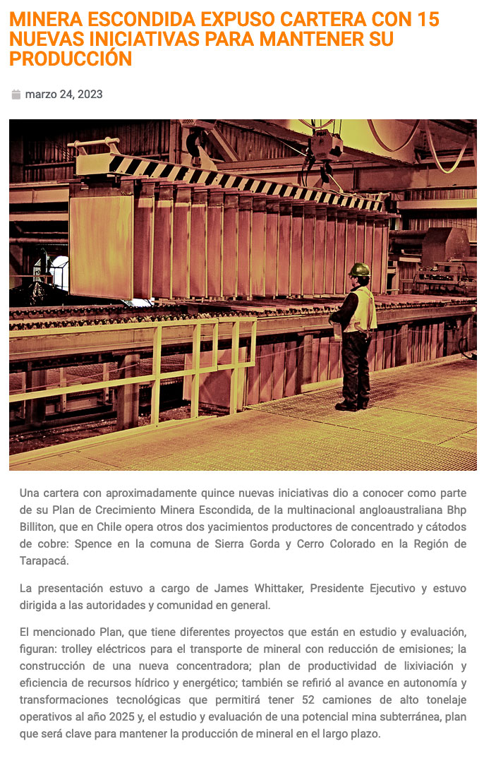 Escondida | BHP presentó plan de crecimiento con anuncio de nuevos proyectos mineros - (coweb.cl)