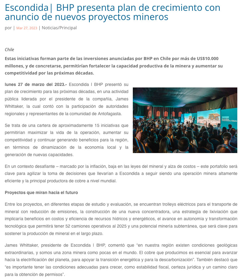 Escondida | BHP presenta plan de crecimiento con anuncio de nuevos proyectos mineros - (Nostálgica Online)