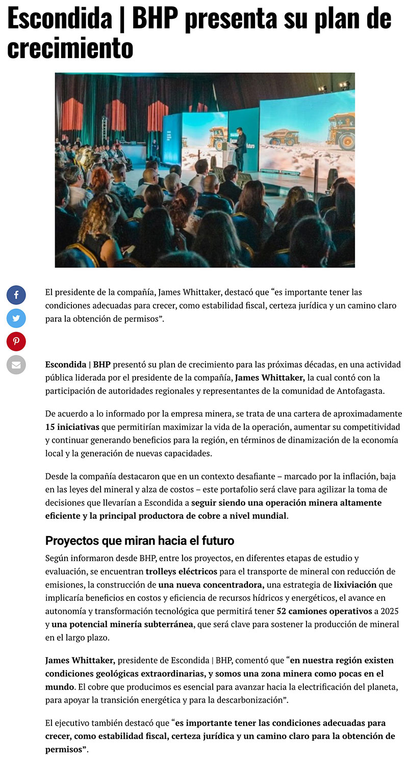 Escondida | BHP presenta plan de crecimiento con anuncio de nuevos proyectos mineros - (Nostálgica Online)