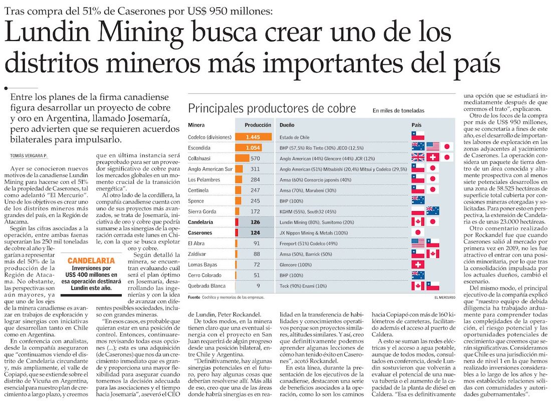 Lundin comprará el 51% de Caserones y operación se concretará este año - (El Diario de Atacama)