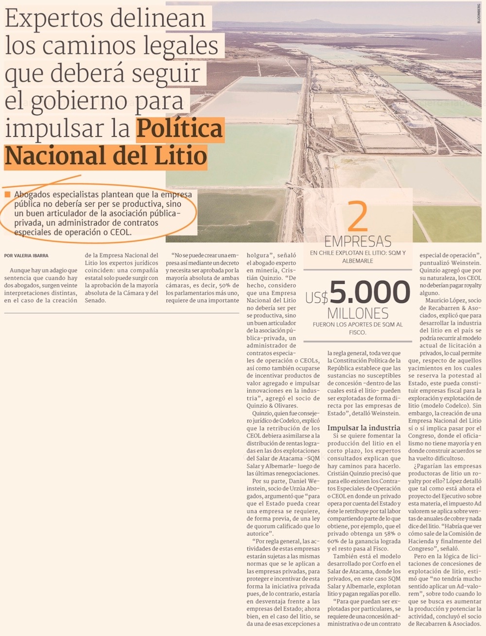 Piden acelerar decisiones por estrategia del litio - (El Mercurio de Santiago)