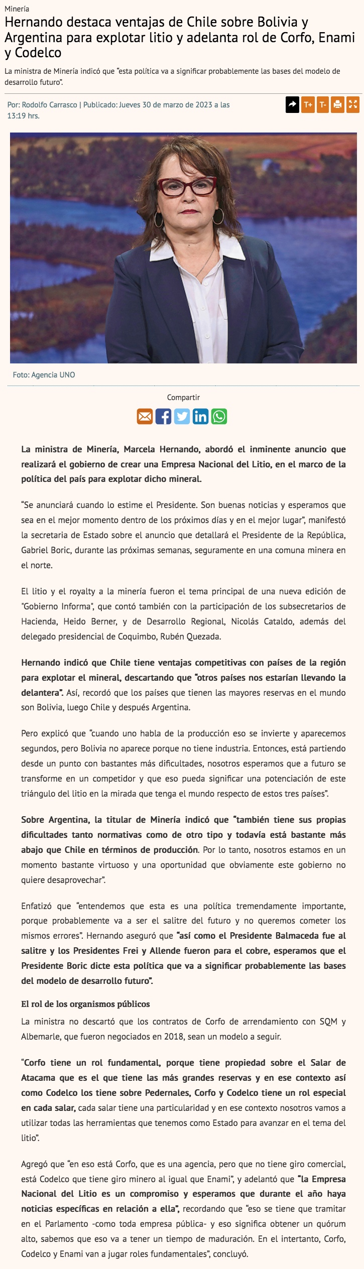 "El salitre del futuro": Hernando dice que Política Nacional del Litio se presentará en próximos días - (biobiochile online)