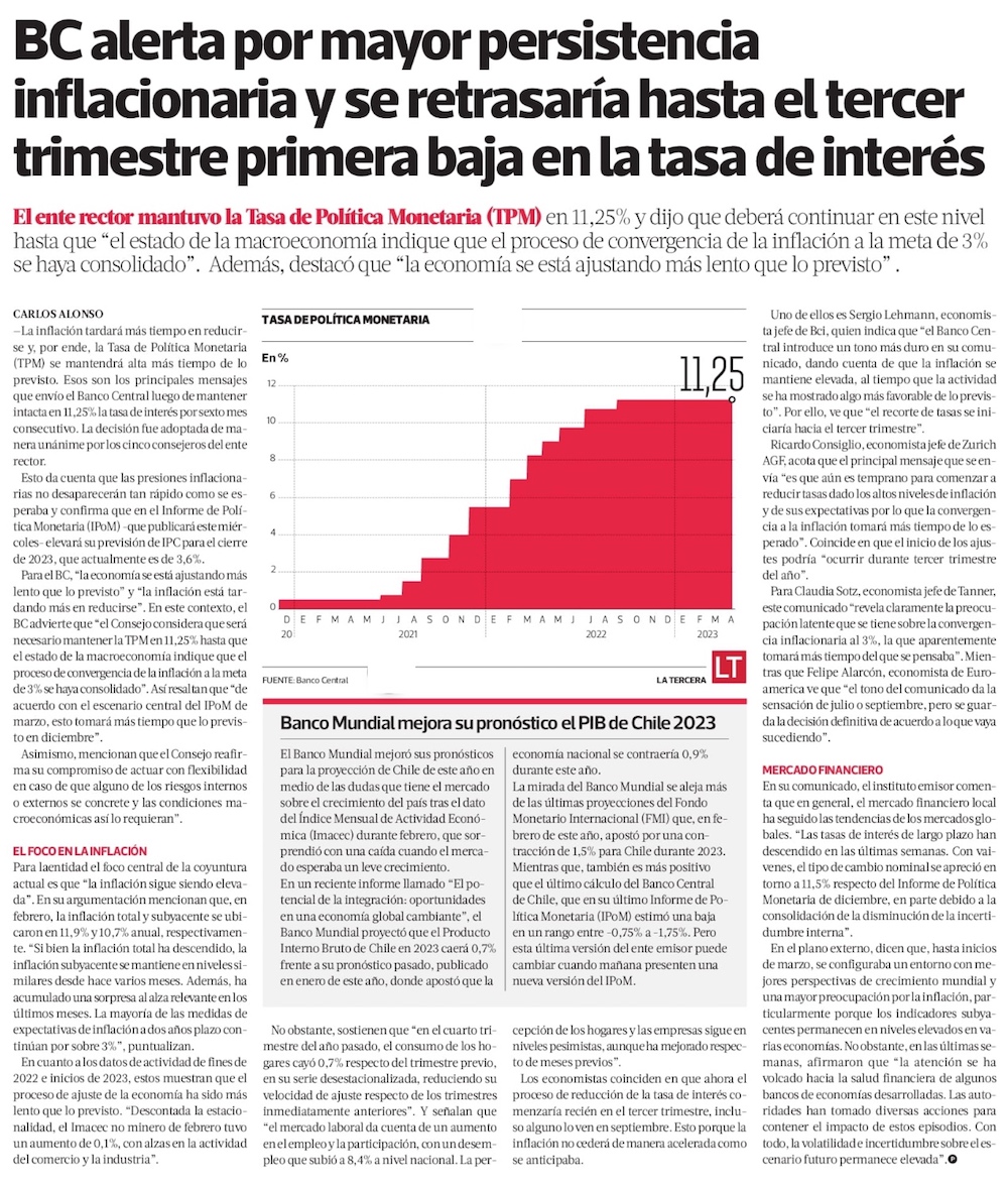 Banco Central endurece tono tras nueva mantención de tasa: “La inflación está tardando más en reducirse” - (Diario Financiero)