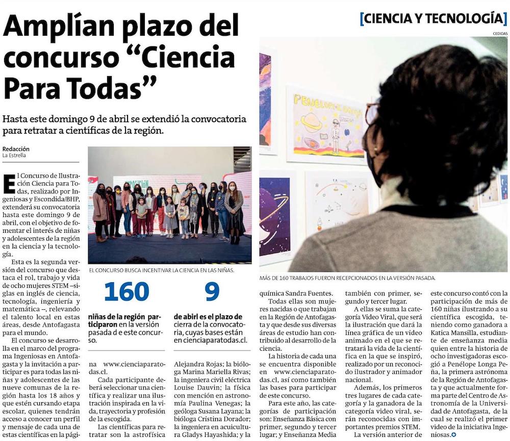 Amplían plazo del concurso "Ciencia Para Todas" - (Estrella del Loa)