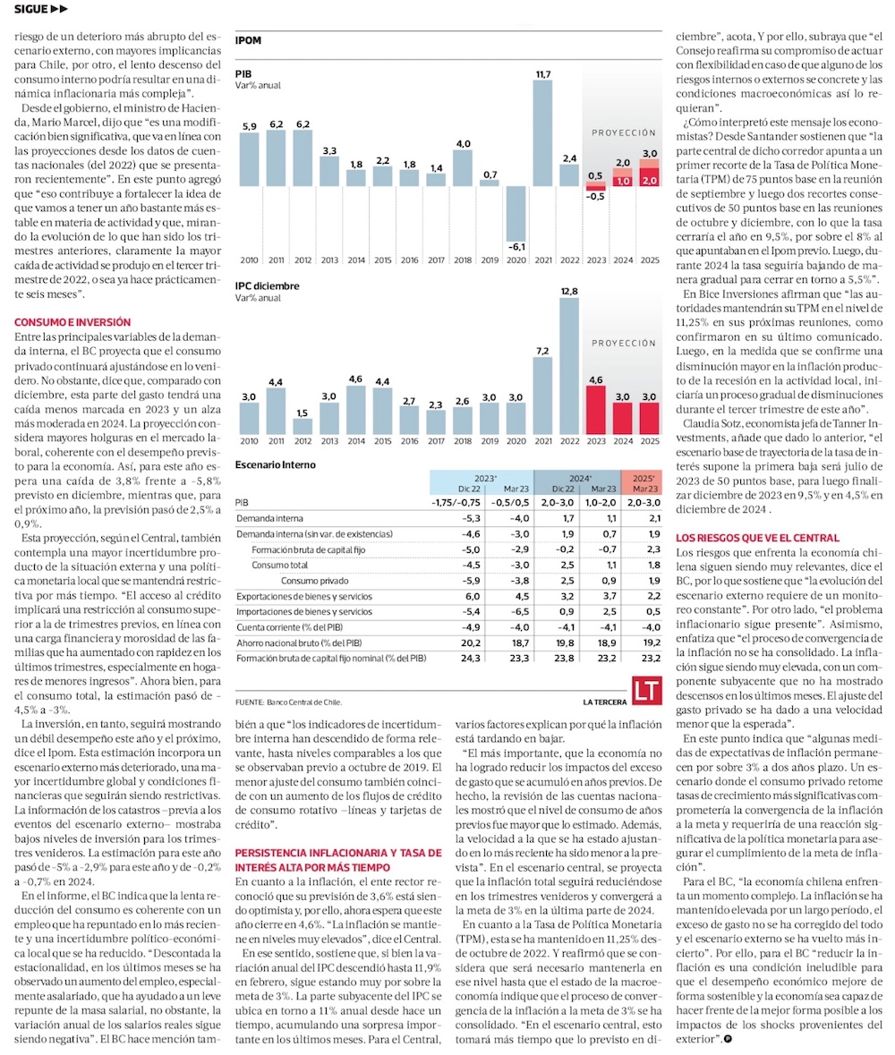 B. Central mejora cálculo del PIB, pero advierte que “problema inflacionario” no está resuelto, ni asegurado su retroceso - (El Mercurio de Santiago)