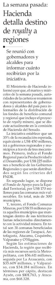 Municipios del norte plantean dudas sobre royalty minero al ministerio de Hacienda - (El Mercurio de Antofagasta)