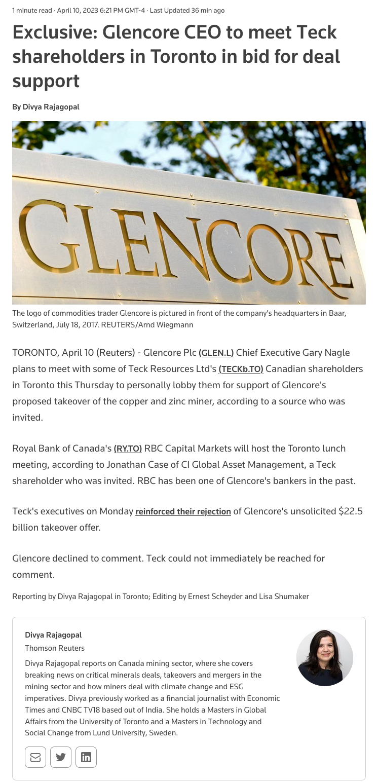 Dos magnates canadienses, los obstáculos de Glencore para comprar Teck - (La Segunda)