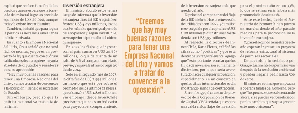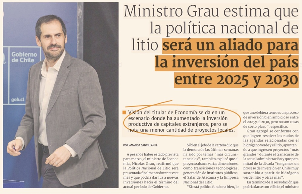 Ministro Grau por política del litio: "El grueso de las cosas que queremos hacer no necesita la empresa nacional del litio" - (Pulso)