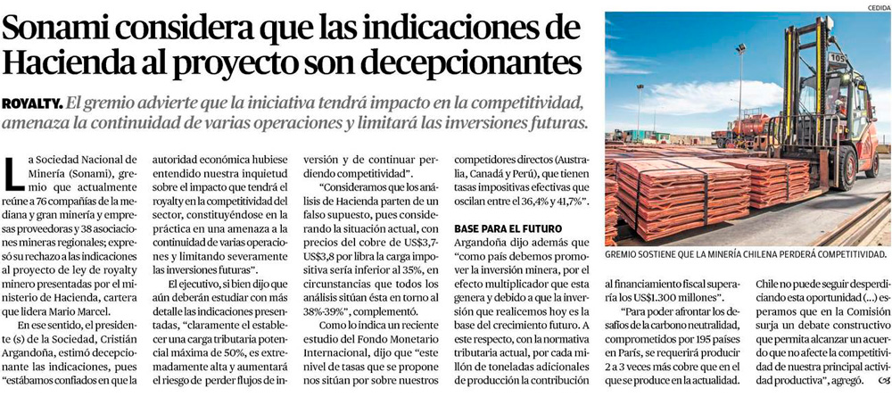 Royalty: Gobierno presenta indicaciones que incluyen carga tributaria máxima de 50% para mineras y Sonami sale a criticar - (emol)