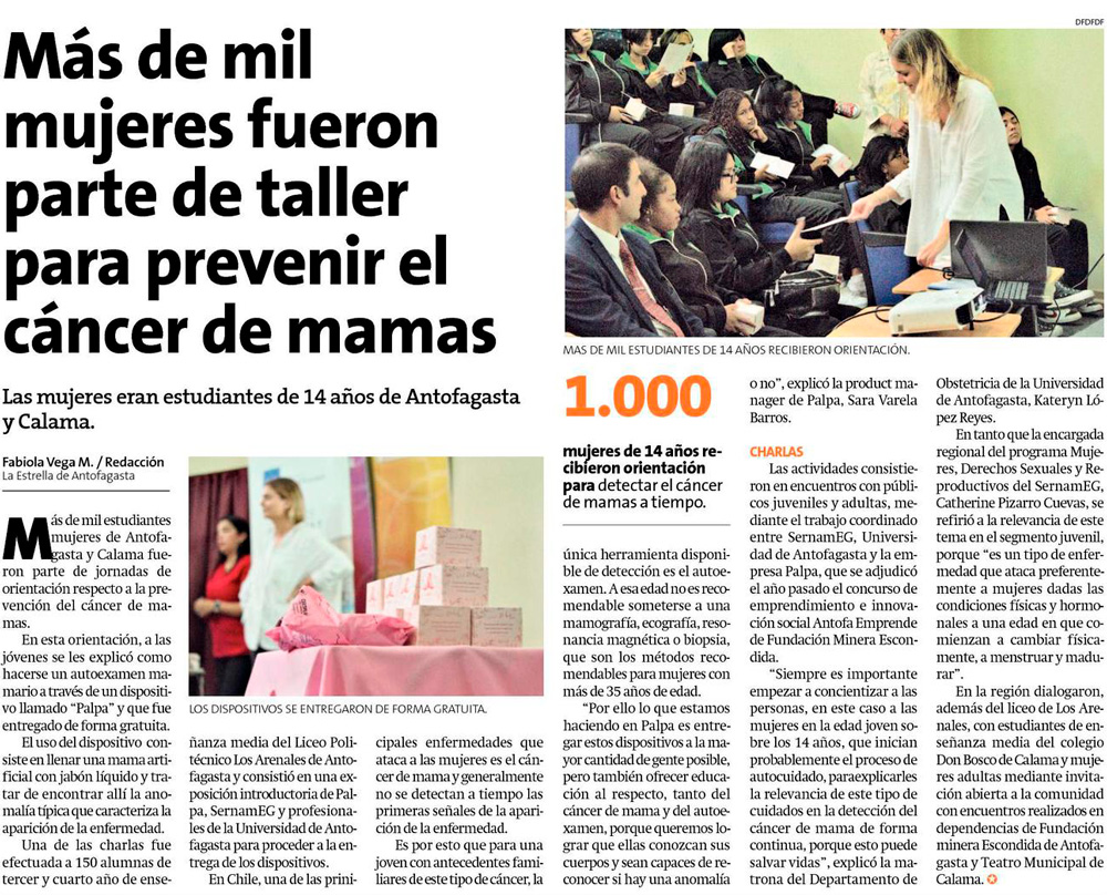 Previenen cáncer de mama en mayores de 14 años de Calama y Antofagasta - (El Mercurio de Antofagasta)