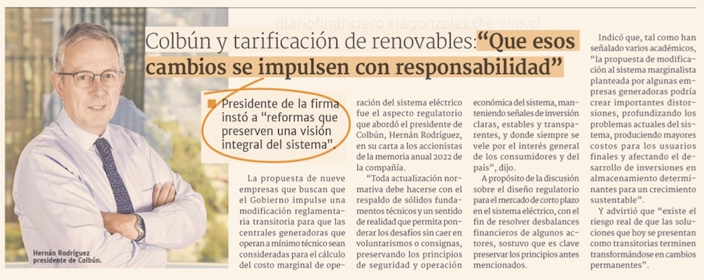 ColbĂșn advierte de efectos secundarios por propuesta de renovables - (El Mercurio de Santiago)