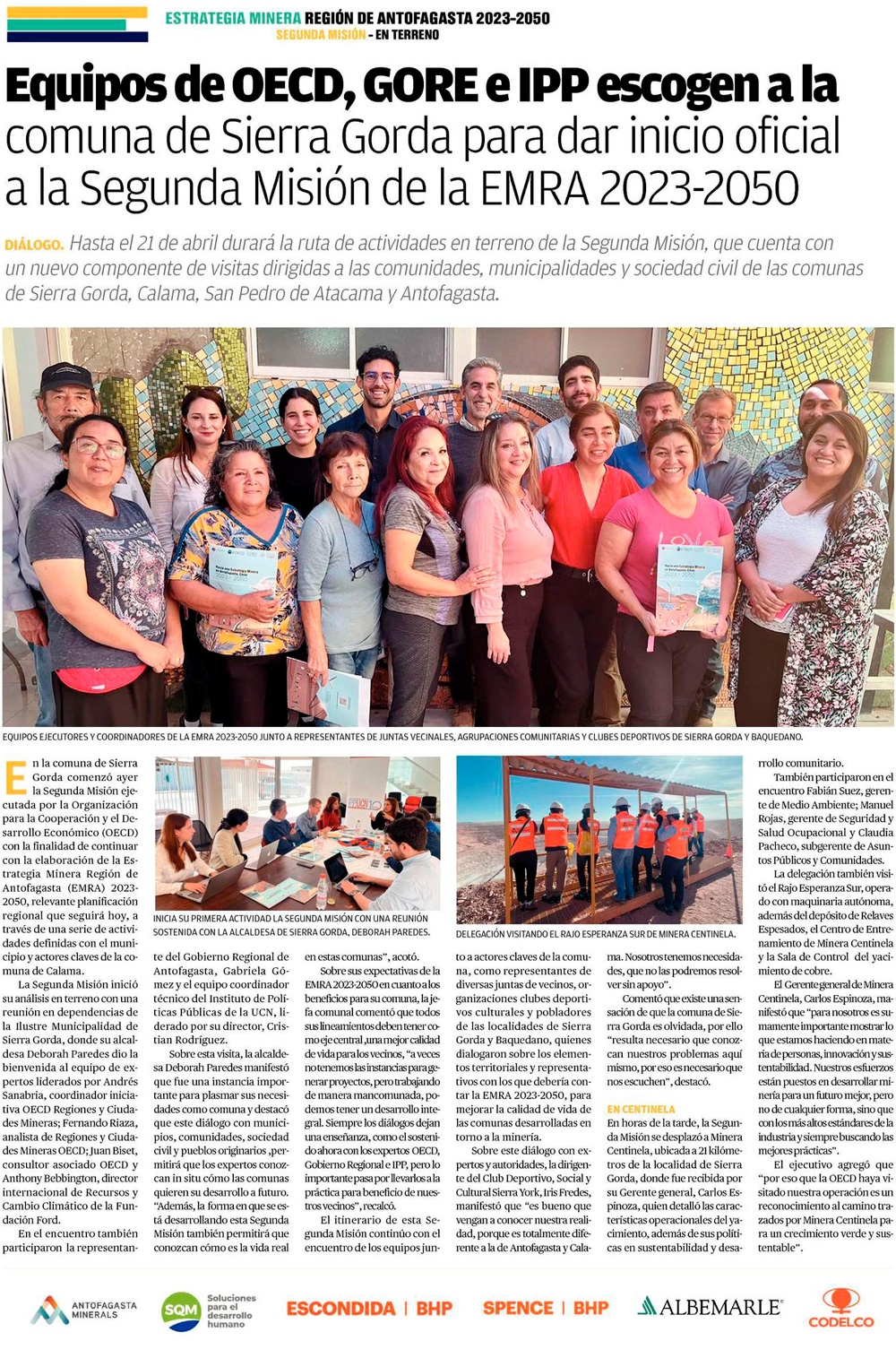 Equipos de OECD, GORE e IPP escogen a la comuna de Sierra Gorda para dar inicio oficial a la Segunda Misión de la EMRA 2023-2050 - (El Mercurio de Antofagasta)