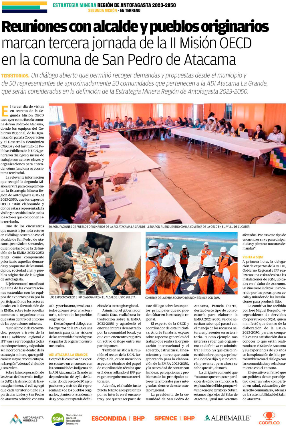 Reuniones con alcalde y pueblos originarios marcan tercera jornada de la II Misión OECD en la comuna de San Pedro de Atacama - (El Mercurio de Calama)