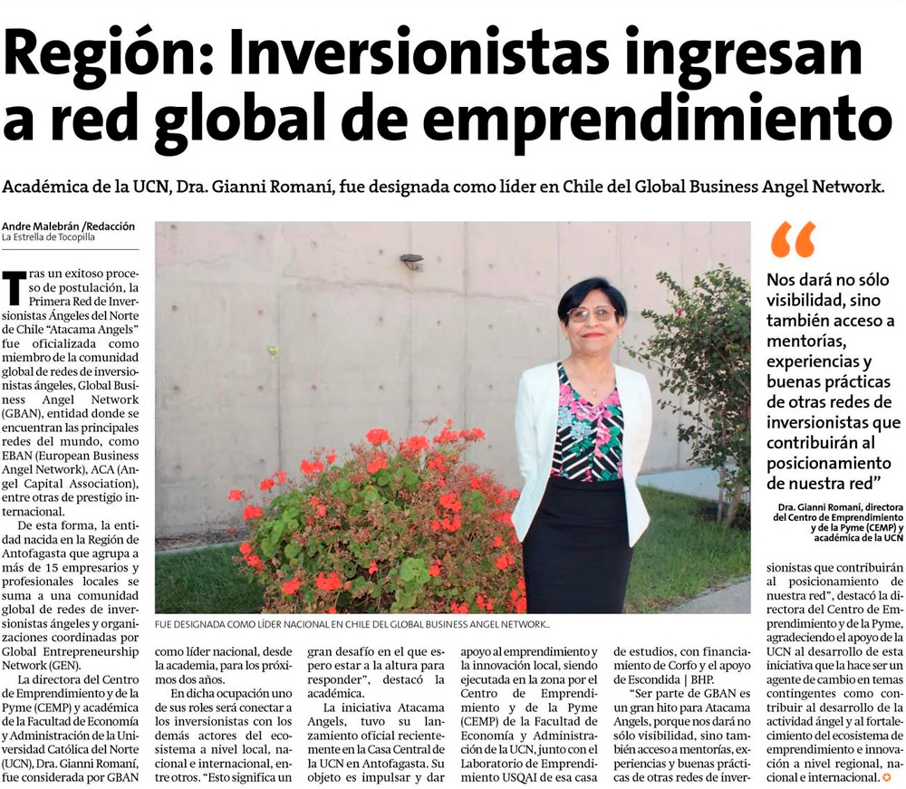 Región: Inversionistas ingresan a red global de emprendimiento - (Estrella de Antofagasta)