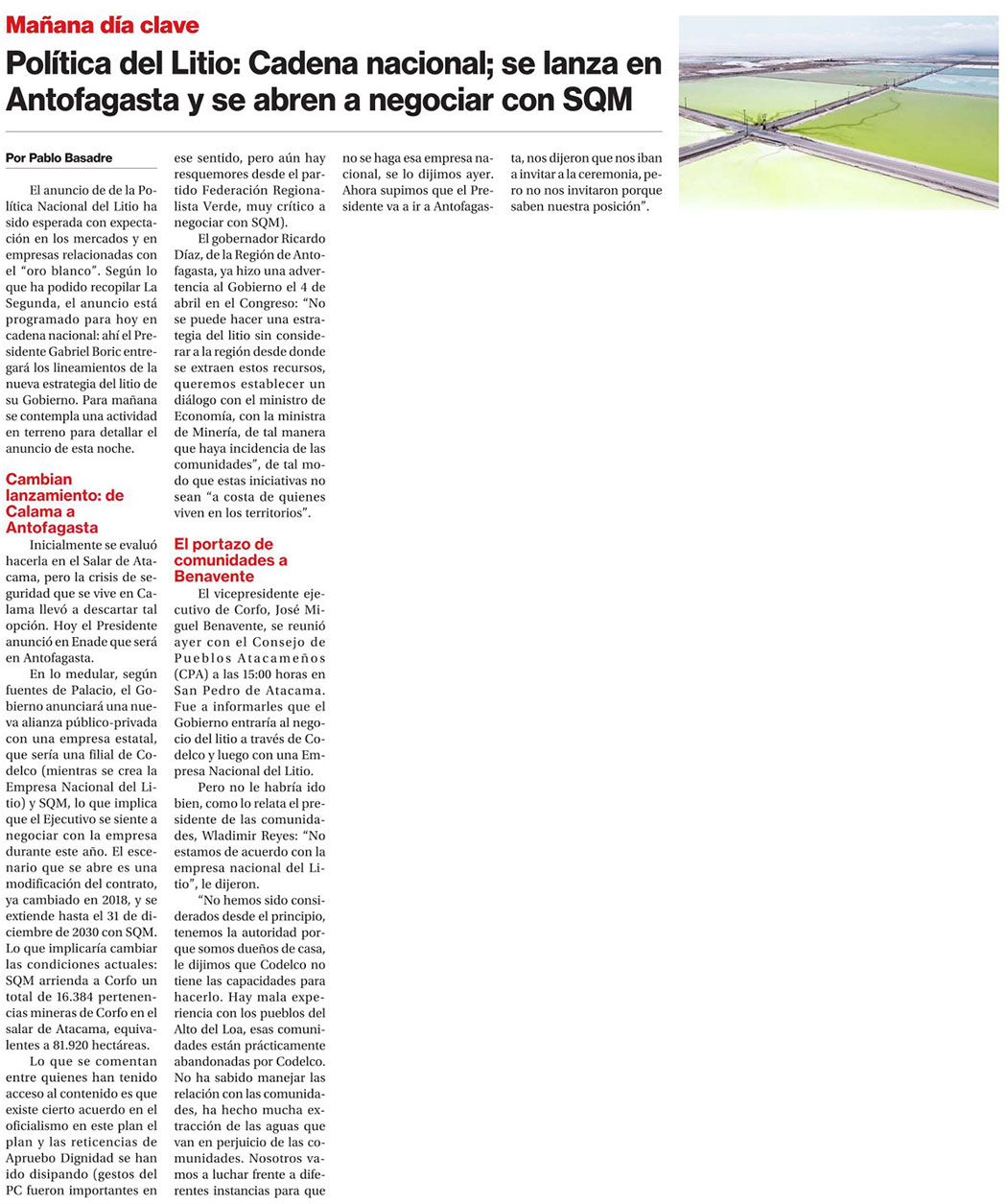 Presidente Boric anuncia Estrategia Nacional del Litio con acento en la Región de Antofagasta - (El Mercurio de Antofagasta)