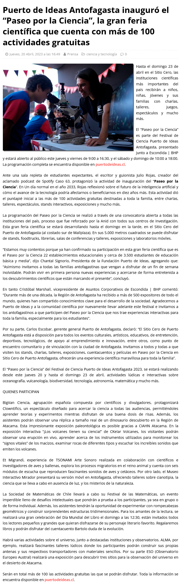 Puerto de Ideas Antofagasta inauguró el “Paseo por la Ciencia”, la gran feria científica que cuenta con más de 100 actividades gratuitas - (artenorte.cl)