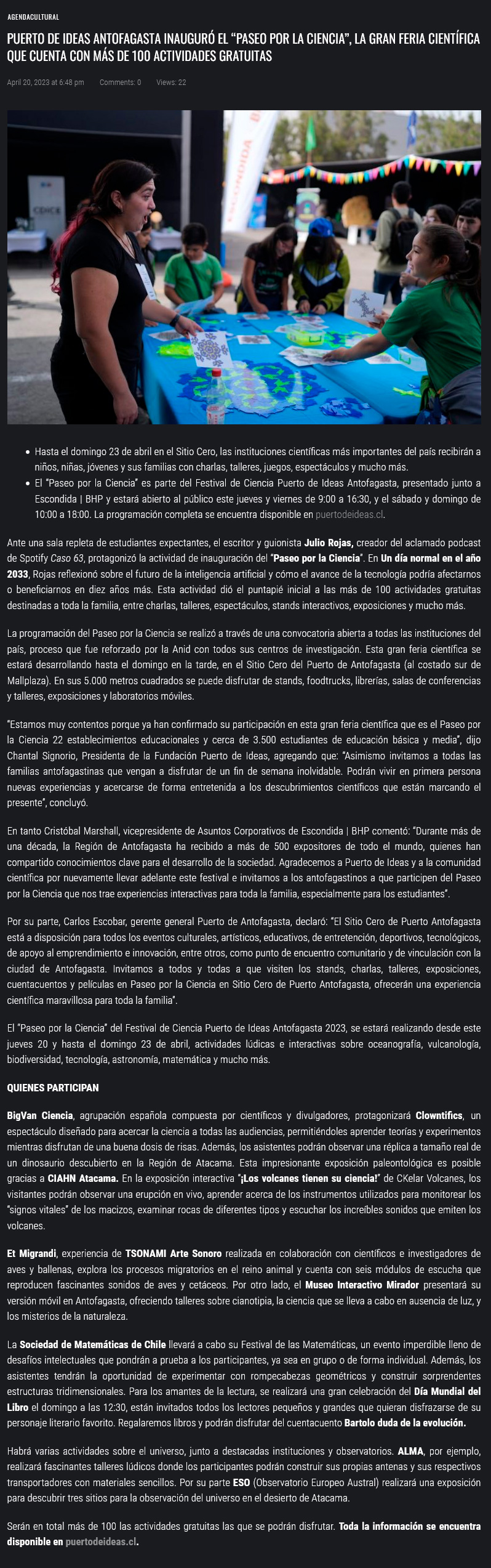 Puerto de Ideas Antofagasta inauguró el “Paseo por la Ciencia”, la gran feria científica que cuenta con más de 100 actividades gratuitas - (artenorte.cl)