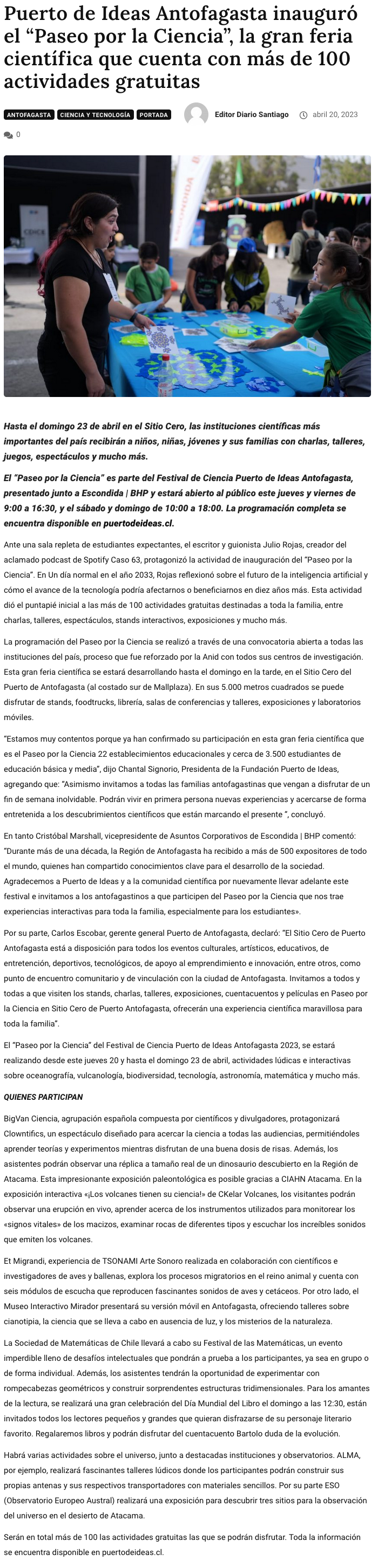 Puerto de Ideas Antofagasta inauguró el “Paseo por la Ciencia”, la gran feria científica que cuenta con más de 100 actividades gratuitas - ( artenorte.cl)