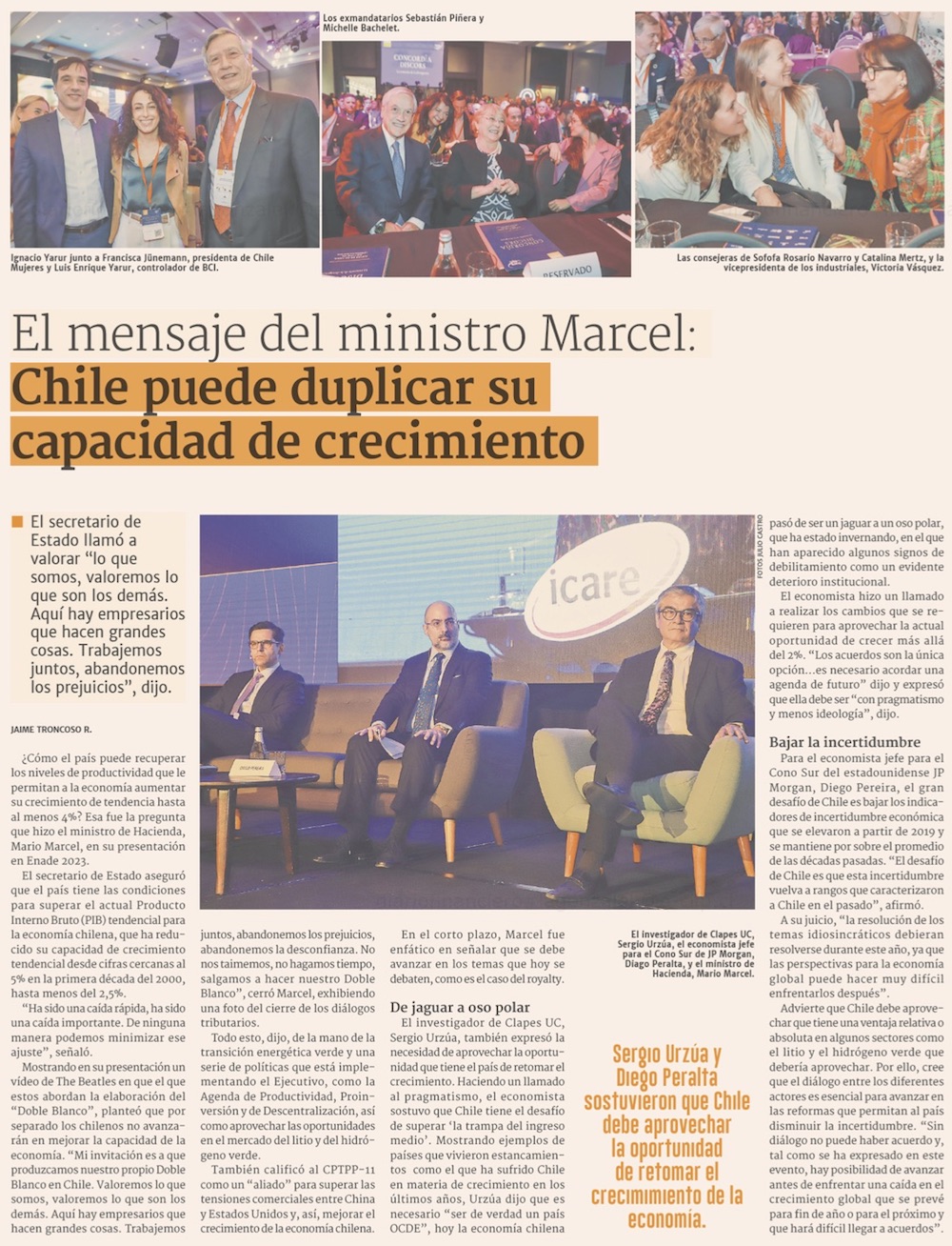 Marcel a empresarios: “No nos taimemos, no hagamos tiempo, salgamos a hacer nuestro álbum Blanco” - (El Mercurio de Santiago)