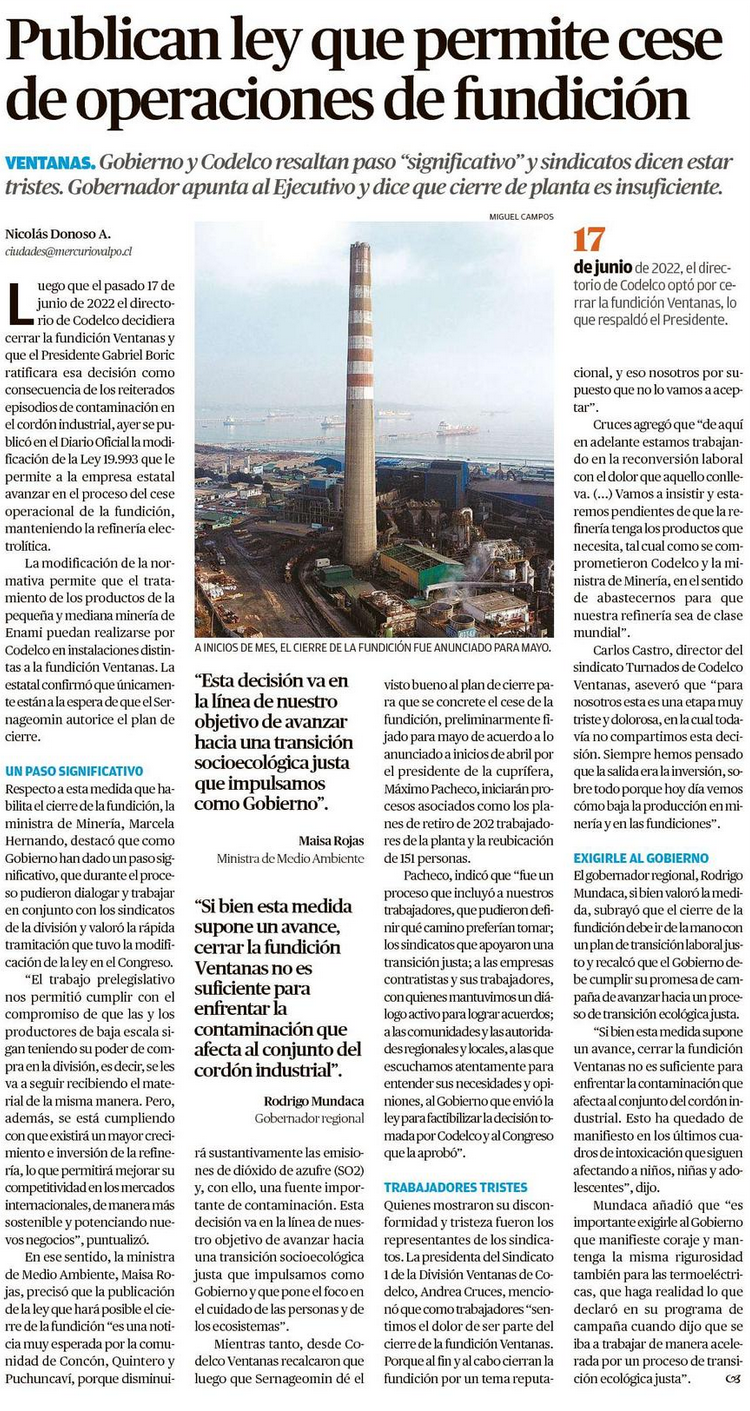 Entra en rigor ley que permite el cierre gradual de Fundición Ventanas en Puchuncaví - (biobiochile online)