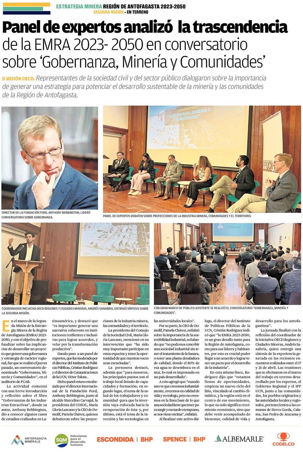 Panel de expertos analizó la trascendencia de la EMRA 2023- 2050 en conversatorio sobre 'Gobernanza, Minería y Comunidades' - (El Mercurio de Antofagasta)