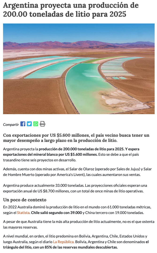 Litio: Argentina proyecta exportaciones del mineral por US$ 5.653 millones - (infogate.cl)