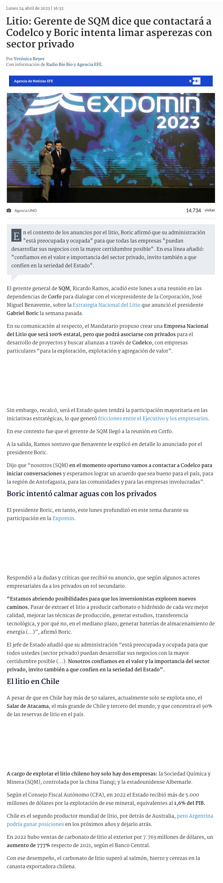 SQM tras reunión con Corfo por litio: "Esperamos lograr un acuerdo que sea bueno para el país" - (emol)