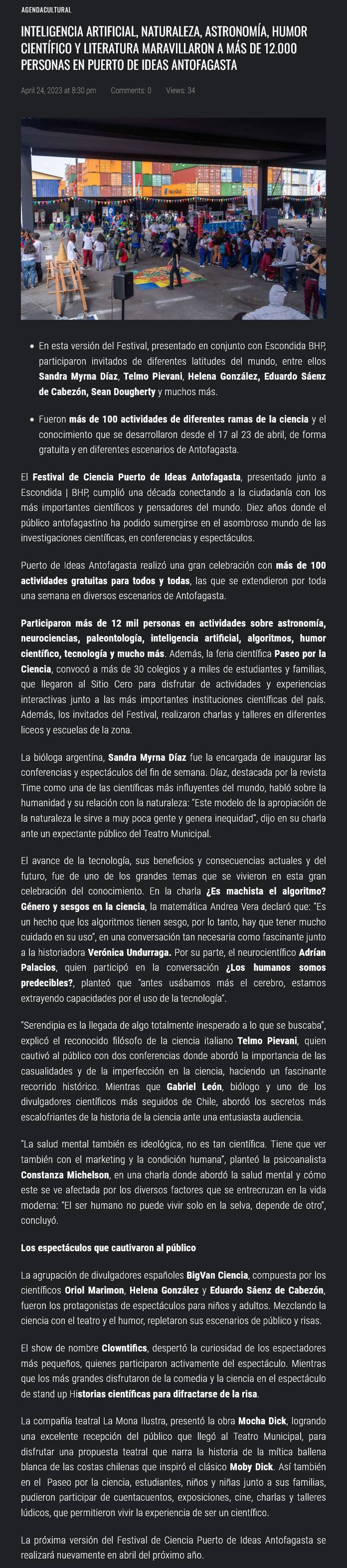Inteligencia artificial, naturaleza, astronomía, humor científico y literatura maravillaron a más de 12.000 personas en Puerto de Ideas Antofagasta - (artenorte.cl)