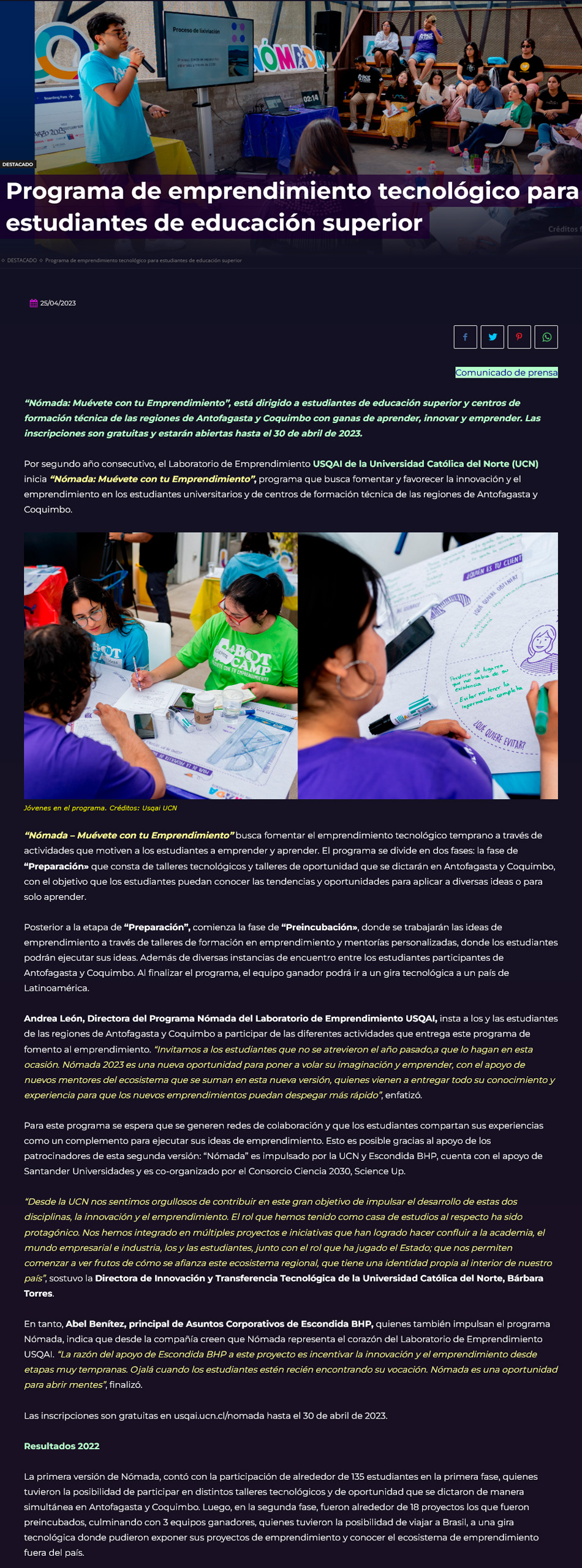USQAI UCN lanza segunda versión de programa que busca potenciar el emprendimiento tecnológico - (radiosanbartolome.cl)