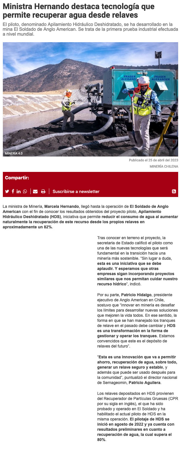 Relaves deshidratados: El innovador sistema de Anglo American que hace más eficiente el uso del agua - (biobiochile online)