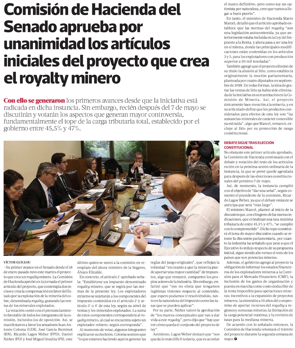 Aprueban la creación de un royalty para la industria minera - (El Mercurio de Santiago)