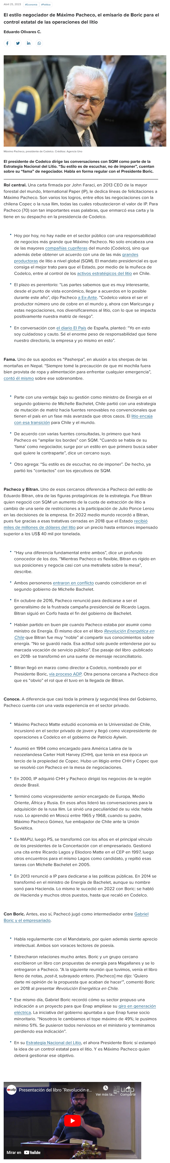 Máximo Pacheco revela que desde hace meses preparan negociaciones con SQM por contratos del Salar de Atacama - (elciudadano)