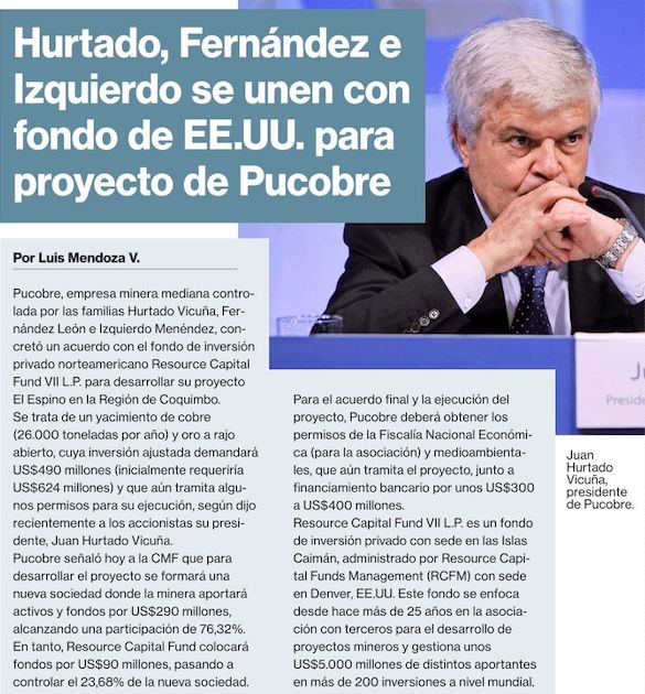 Pucobre sella acuerdo con fondo de inversión para el proyecto minero El Espino - (Diario Financiero)