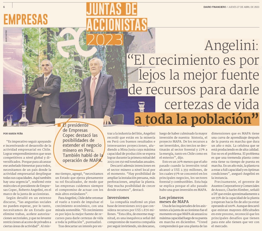 Angelini y el litio: “El Estado debe ser regulador; somos proempresa privada” - (El Mercurio de Santiago)