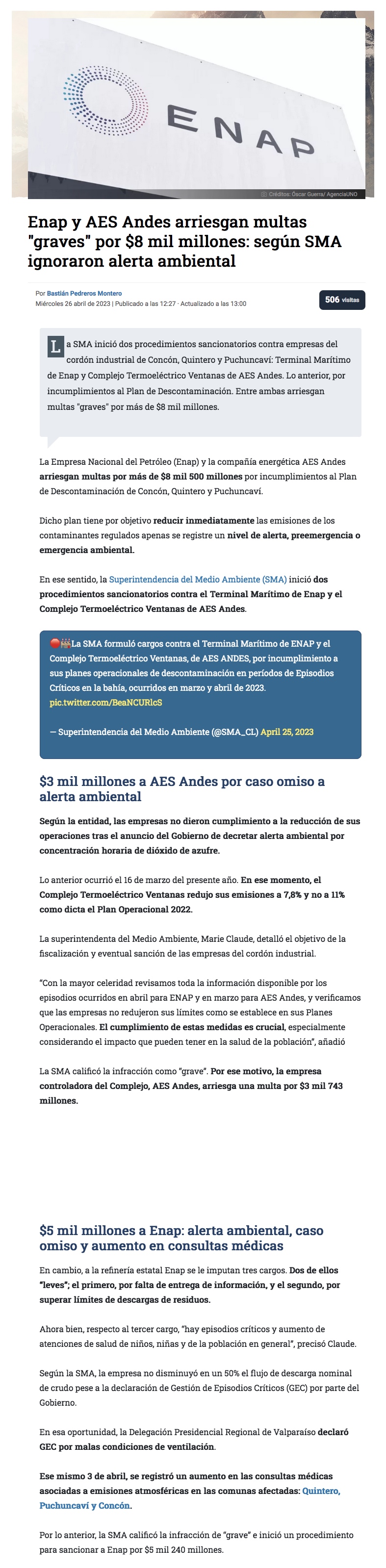 SMA con el foco en Quintero: empresas serán investigadas - (Estrella de Valparaíso)