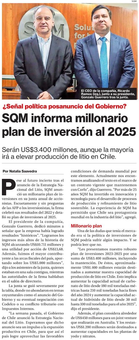Cómo distribuirá SQM los recursos de las inversiones en litio en Chile y Australia en los próximos años - (ex-ante.cl)