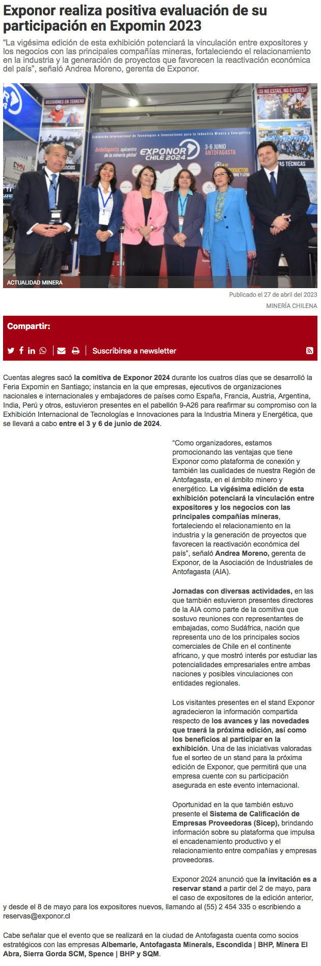 Exponor realiza positiva evaluación de su participación en Expomin 2023 - (Maray Online)