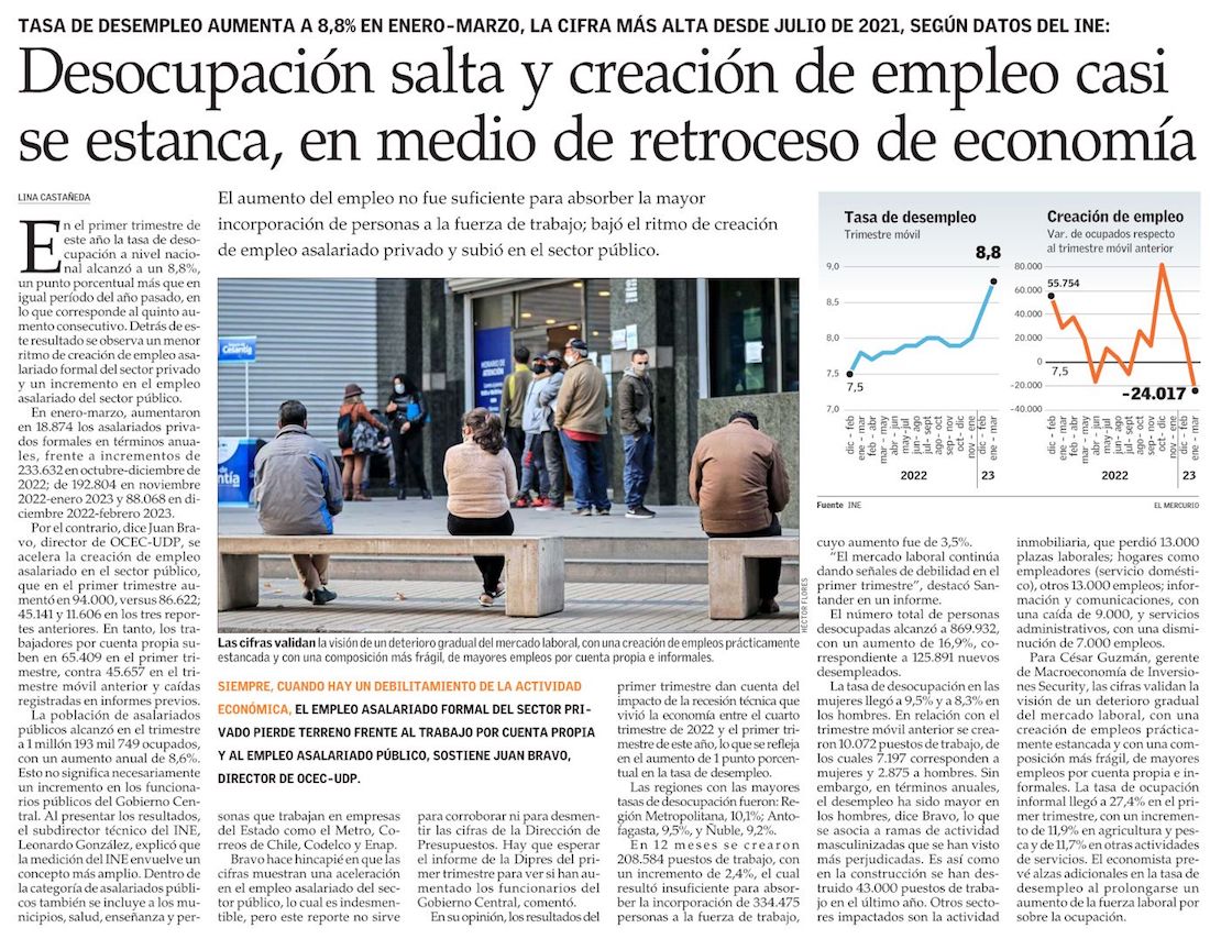 Desempleo sube por quinto mes consecutivo al 8,8% y en la Región Metropolitana vuelve a los dos dígitos - (Pulso)