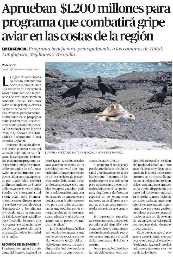 Alcaldes valoran asignación de recursos para enfrentar emergencia por gripe aviar - (El Mercurio de Antofagasta)