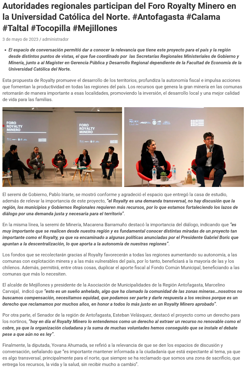 Autoridades parlamentarias, regionales y comunales expusieron sobre el royalty - (El Mercurio de Antofagasta)