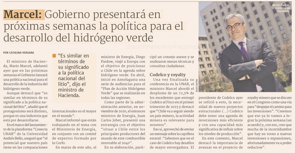 A pocos días del anuncio de la estrategia del litio se dará a conocer plan para impulsar industria del hidrógeno verde - (El Mercurio de Santiago)