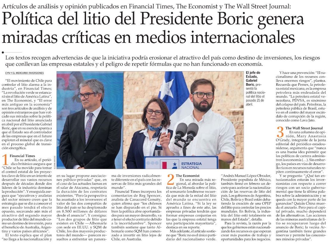 The Economist y Financial Times alertan sobre efectos de la Estrategia Nacional del Litio y posible pérdida de mercado para Chile - (Pulso)