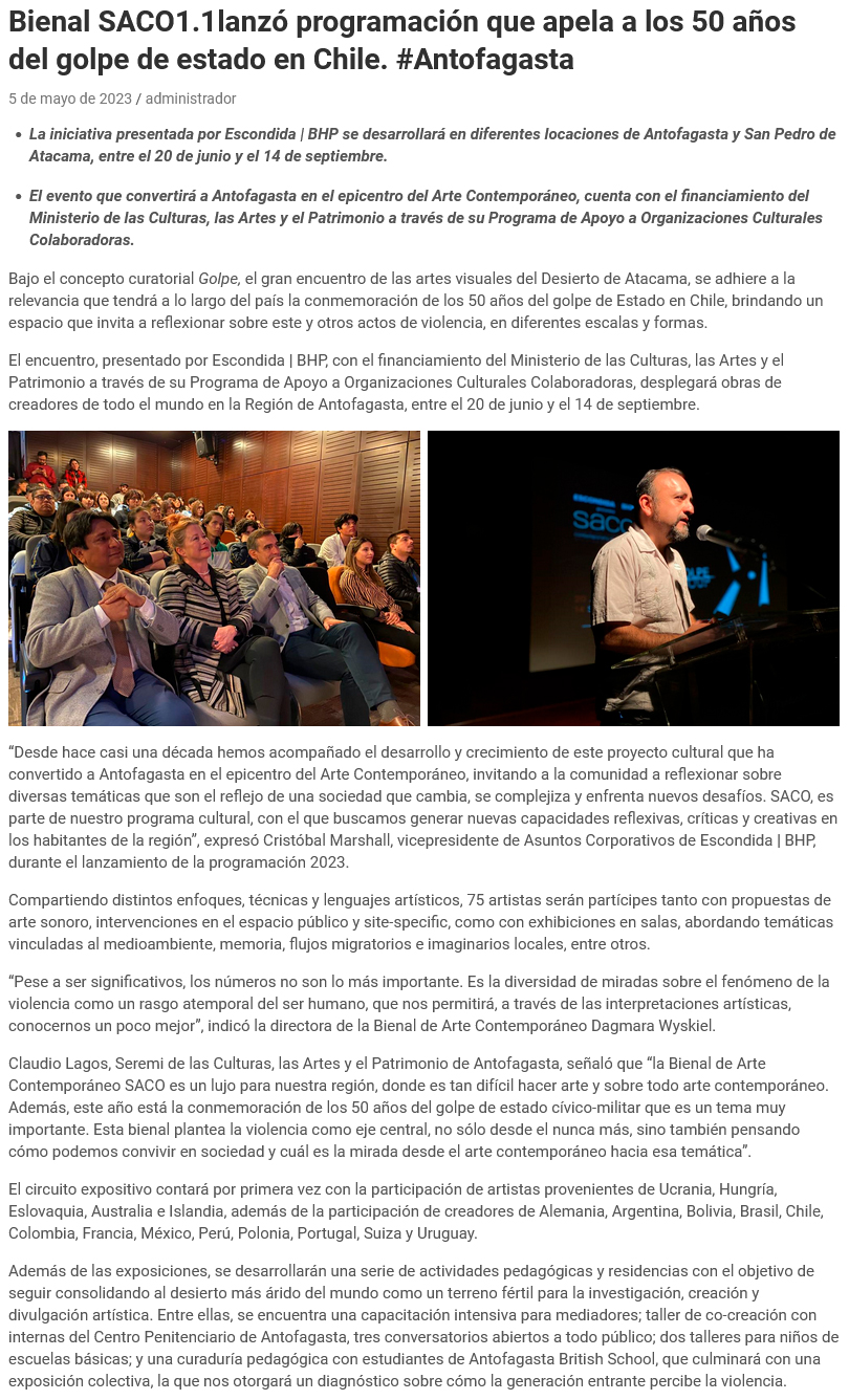 Bienal SACO1.1 lanzó programación que apela a los 50 años del golpe de estado en Chile - (artenorte.cl)