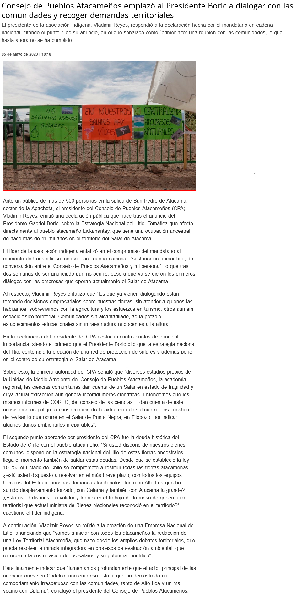Consejo de Pueblos Atacameños cuestionó estrategia del litio - (Estrella de Antofagasta)