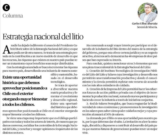 Estrategia Nacional del Litio - (El Mercurio de Antofagasta)