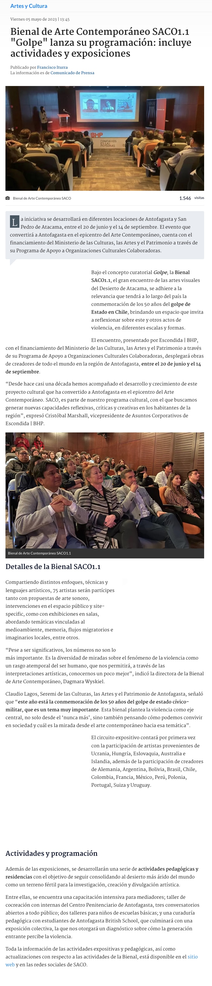 Bienal SACO1.1 lanzó programación que apela a los 50 años del golpe de estado en Chile - (artenorte.cl)