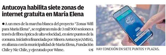 Minera Antucoya en alianza con municipio pone en marcha “Zonas Wifi para María Elena” - (norteminero online)